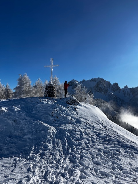 Am letzten Tag unserer Quality time mit Family im Schnee stand noch ein Trip über die Grenze nach Tarvis an. Noch ein letztes mal hinauf in die klare Bergluft und noch ein letztes Mal die Sicht auf die italienischen, slowenischen und österreichischen Alpen genießen. Das geht ganz besonders gut am Monte Lussari: https://lussari.eu/de/ Mit der Gondel geht es hoch zu einem kleinen Bergdorf, das eine atemberaubende Kulisse umgibt. Und ja, es war eisig kalt dort oben, aber der Aperol auf der Sonnenterrasse war trotzdem möglich. Was soll ich euch sagen, erleben ist besser als erlesen. Ihr solltet das einfach selbst sehen.